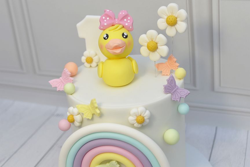 Czy jest coś, co wywoła większy uśmiech u małej dziewczynki niż słodka, żółta kaczuszka? 🐤 To właśnie ona króluje na tym pastelowym torcie, stając się jego najważniejszą bohaterką. Dzieci uwielbiają kaczuszki, a w takiej cukrowej, bajkowej wersji oczarują nie tylko najmłodszych, ale i dorosłych gości.